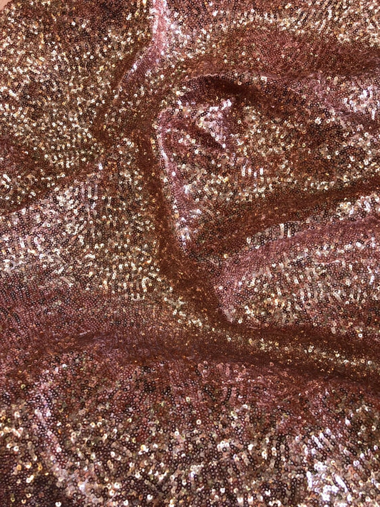 Rose gold mini glitz sequins on heavy spandex 4way stretch 58/60" Sold by the YD. Ships worldwide from Los Angeles California USA.