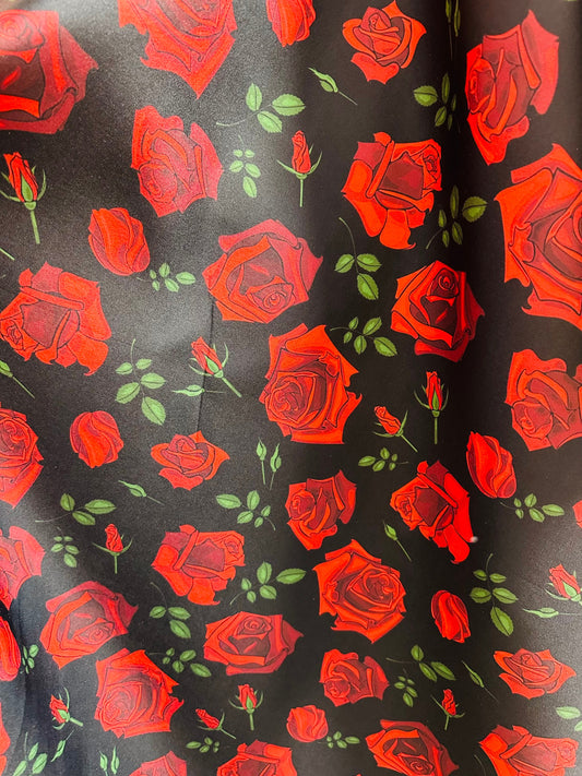 RED ROSE design on stretch techno fabric 2way stretch 58/60" 100% Polyester Sold by the yd. Ships worldwide from Los Angeles CA