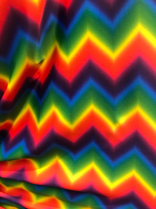 Multicolor chevron design on nylon spandex 4way Stretch 58/60" Sold by the YD. Ships worldwide from Los Angeles California USA
