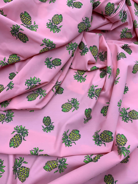 Pineapple design blush pink print on nylon spandex 4way stretch 58/60" Sold by the YD. Ships worldwide from Los Ángeles California USA.