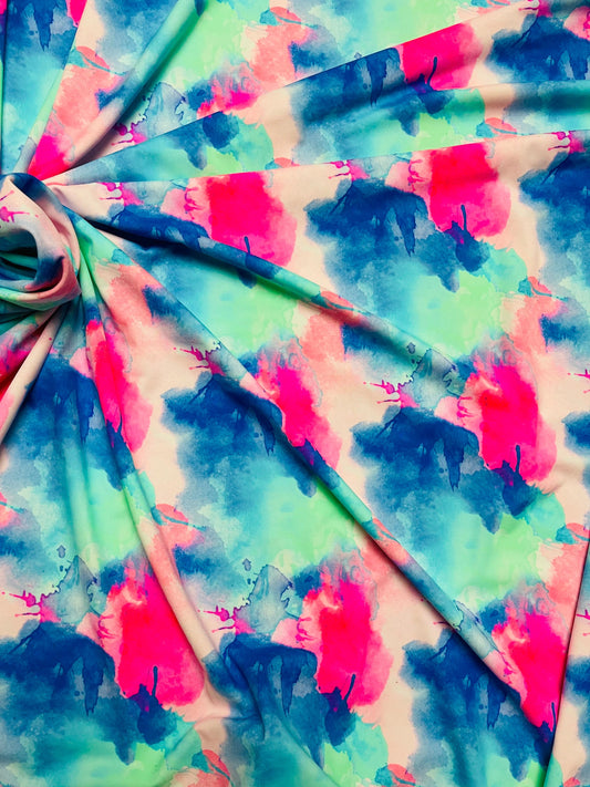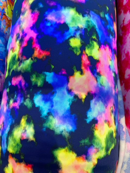 New abstract design tie dye multicolor print on best quality of nylon spandex 4-way stretch 58/60” Sold by the YD. Ships Worldwide from L.A