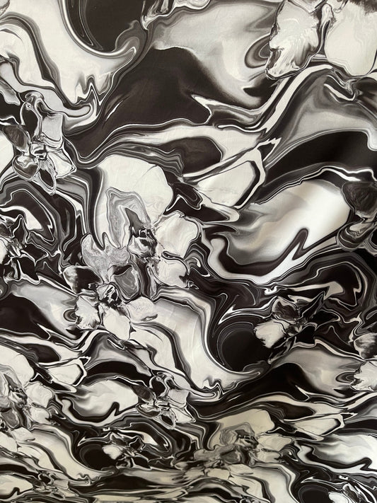 New abstract lava design Black/white print on best quality of nylon spandex 4-way stretch 58/60” Sold by the YD. Ships worldwide from L.A CA