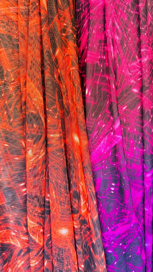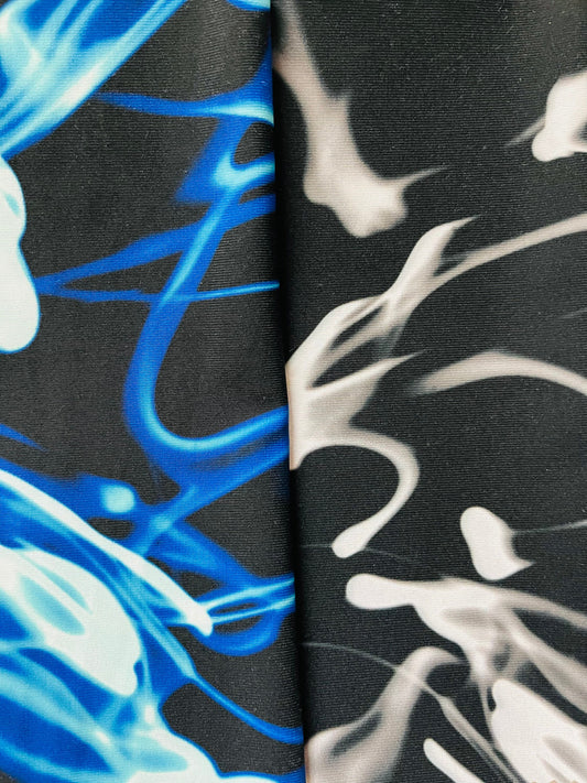 New Abstract Electric Design print on poly spandex 4-way stretch 58/60” Sold by the YD. Ships Worldwide from Los Angeles California USA.