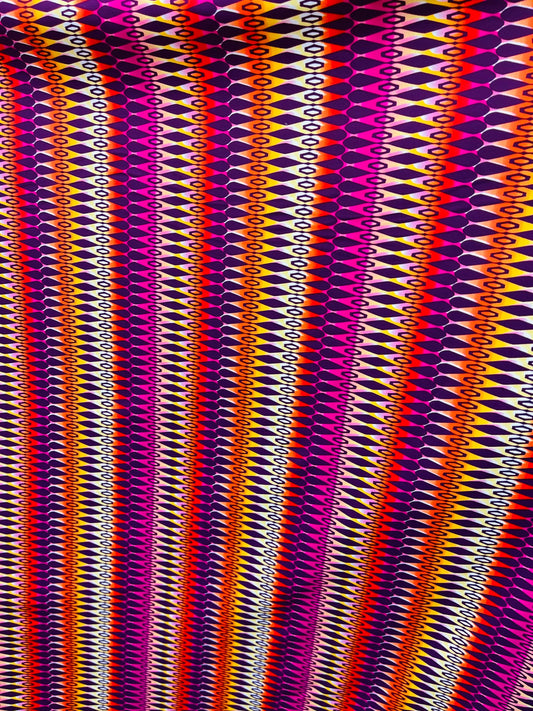 Geometric design Magenta/Multicolor print on best quality of nylon spandex 4-way stretch 58/60” Sold by the YD. Ships Worldwide