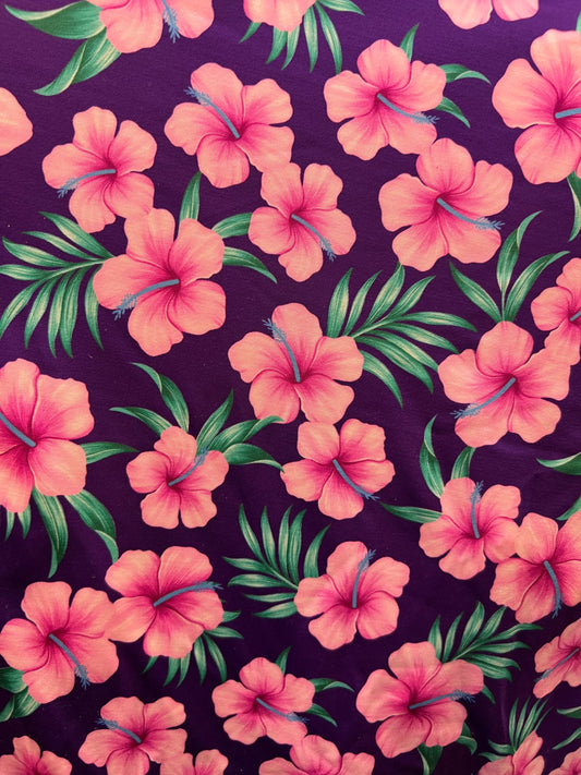 New floral design eggplant/pink print on great quality of nylon spandex 4-way stretch 58/60” Sold by the YD. Ships Worldwide from L.A