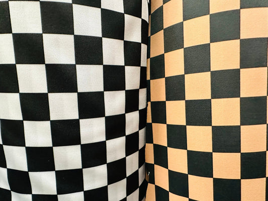 Checkered design 1” print on great quality of nylon spandex 4-way 58/60” Sold by the YD. Ships Worldwide from Los Angeles California USA.