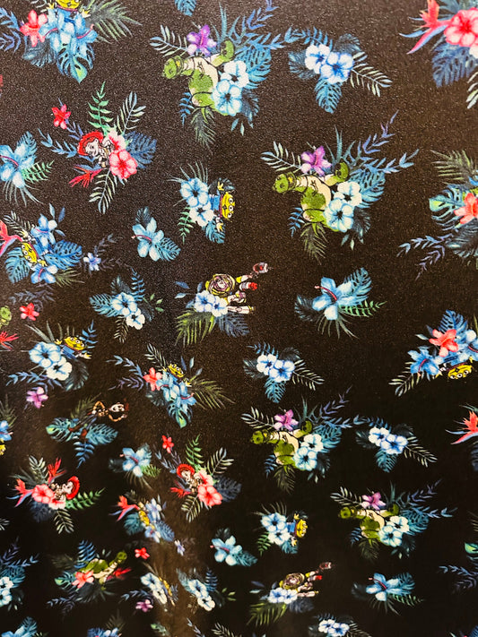 New floral design with dinosaur print on great quality of nylon spandex;-way stretch 58/60”