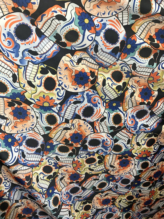 Skull design print on nylon Spandex 4way stretch 58/60" Sold by the yd. Ships worldwide from Los Angeles California USA