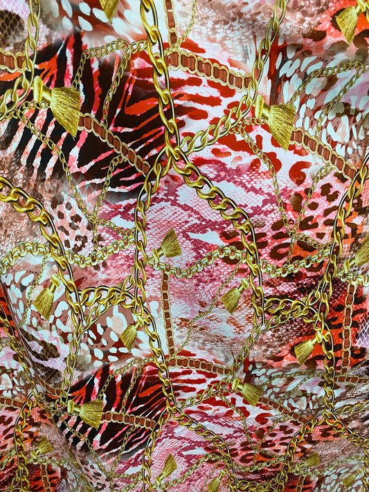 New luxury chain design Animal skin snake design exotic print design on nylon spandex 4-way Stretch 58/60” Sold by the YD. Ships worldwide