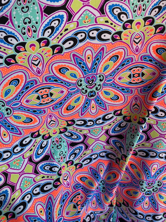 New modern print multicolor nylon spandex 4-way stretch 58/60” Sold by the YD. Ships worldwide from Los Angeles California USA.