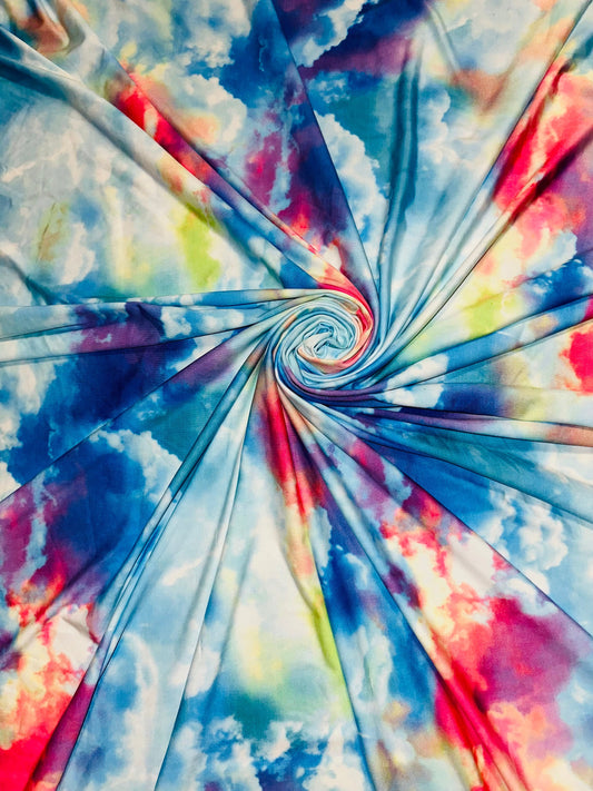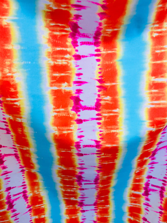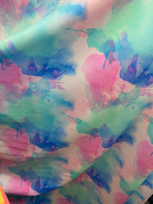 New Modern Tie Dye design Multicolor print on great quality of Nylon spandex 4-way stretch 58/60”