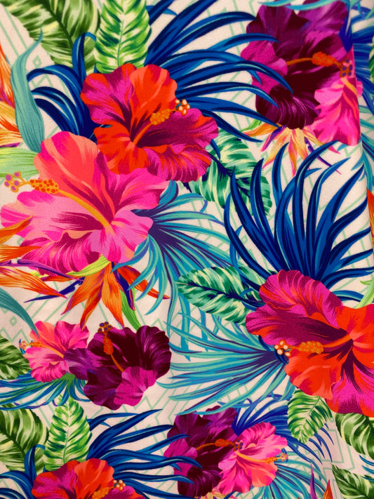 New Jennifer Design Hawaiian print on best quality of nylon spandex 4-way stretch 58/60” Sold by the YD. Ships Worldwide from Los Angeles CA