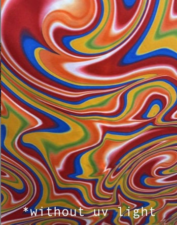 Lava abstract design Red multicolor it glow in the dark with black light great quality of nylon spandex 4-way stretch 58/60” Sold by the YD.
