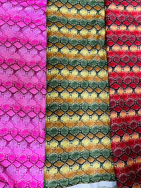 Python Snake design print on great quality of nylon spandex 4-way stretch 58/60” Sold by the YD. Ships Worldwide from Los Angeles California