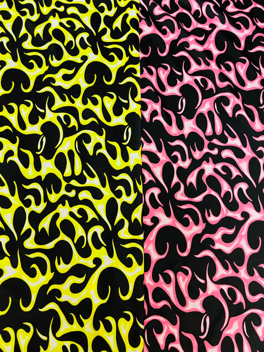 New Flame design print on great quality of Nylon spandex;-way stretch 58/60” Sold by the YD. Ships Worldwide from Los Angeles California USA