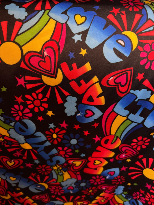 New love design multicolor print on great quality of nylon spandex 4-way stretch 58/60” Sold by the YD. Ships Worldwide from Los Angeles CA