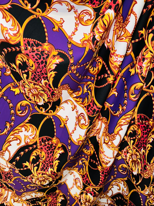 Safari design multi animal print on best quality of nylon spandex and power mesh spandex 4-way stretch 58/60”. Sold by the YD.