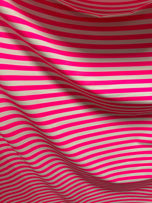 Stripe design 1/2” size neon pink/white print on best quality of nylon spandex 4-way stretch 58/60”
