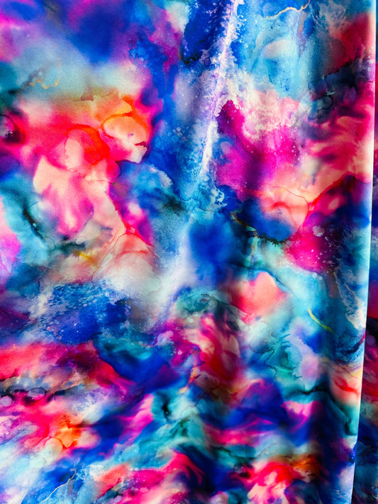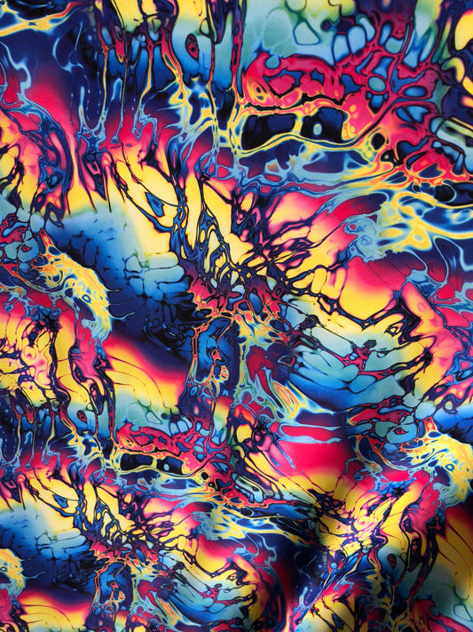 New tie dye abstract design print on best quit nylon spandex 4-way stretch 58/60” Sold by the YD. Ships worldwide from L.A
