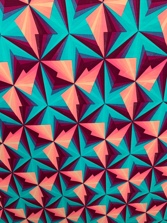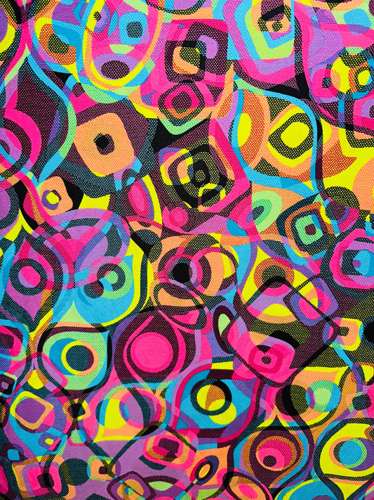New Modern abstract design multicolor with neon colors print on great quality of nylon spandex 4-way stretch