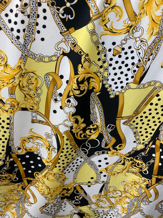 New Luxury nylon spandex print modern chain and dots design medium weight 4-way stretch 58/60” Sold by the YD. Ships worldwide from L.A CA.