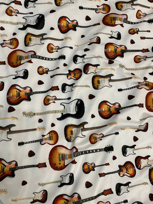 New Electric Guitar design print on great quality of nylon spandex 4-way stretch 58/60” Sold by the YD. Ships Worldwide from Los Angeles CA.
