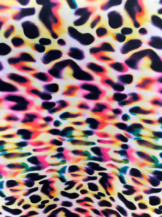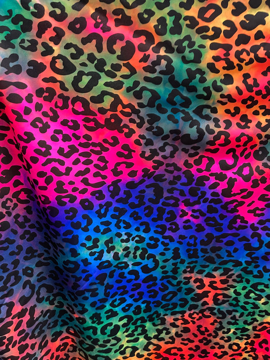 Premium Leopard design print on tie dye nylon spandex 4-way stretch 58/60” Sold by the YD. Ships Worldwide from Los Ángeles California USA.