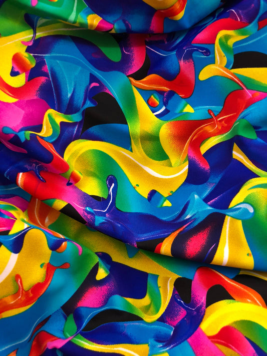 New nylon spandex print graffiti paint design 4way stretch 58/60" Sold by the YD. Ships worldwide from Los Angeles California USA.