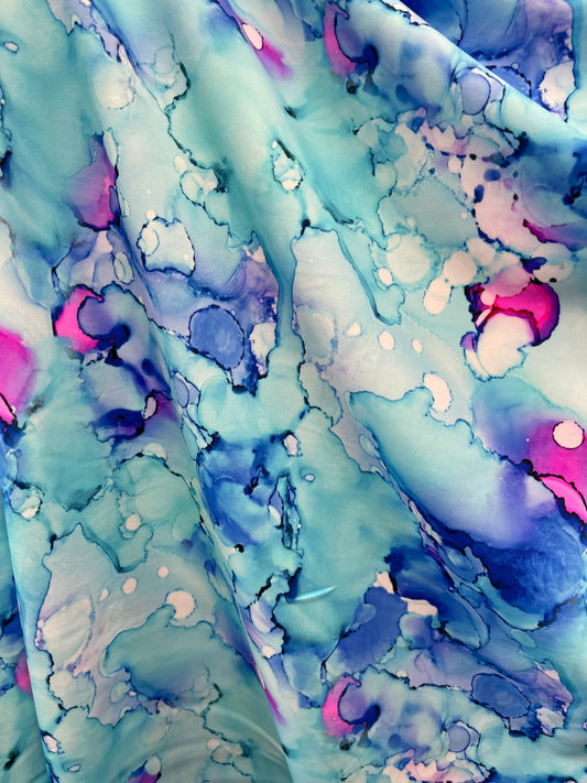 New abstract Marble design print on nylon spandex 4-way stretch 58/60” Sold by the YD. Ships worldwide from Los Angeles California USA.