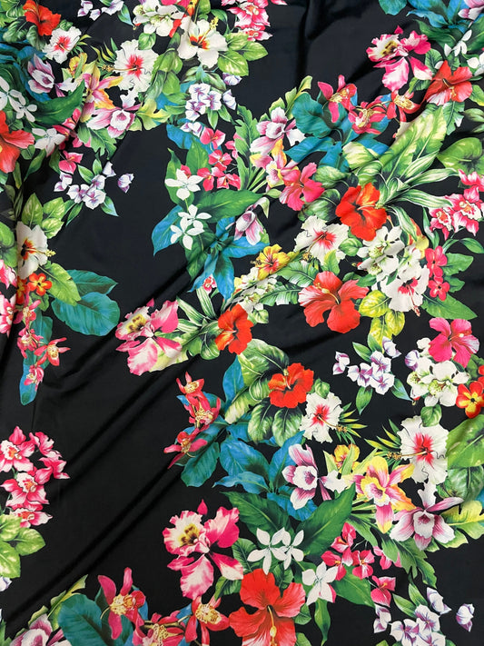 New Fantastic Tropical design print nylon spandex Italian quality 4-way stretch 58/60”