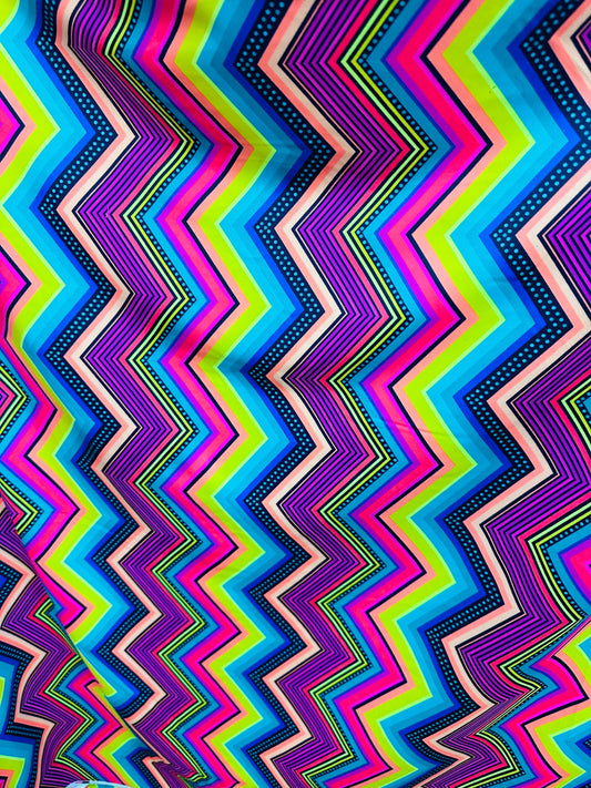 Zigzag abstract design rainbow color print on best quality of nylon spandex 4-way stretch 58/60” Sold by the YD.