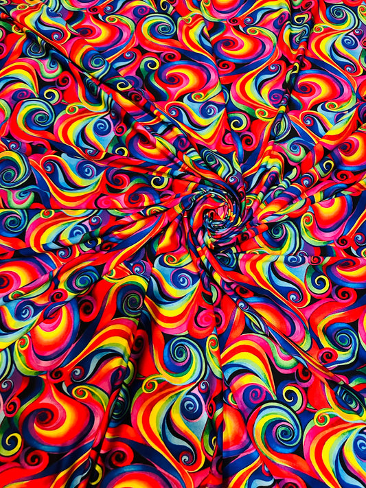 New Rainbow swirl abstract design print on great quality of nylon spandex 4-way stretch 58/60”