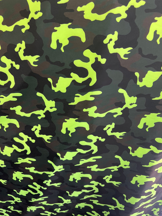 Neon green camouflage design luxury nylon spandex 4-way stretch 58/60”