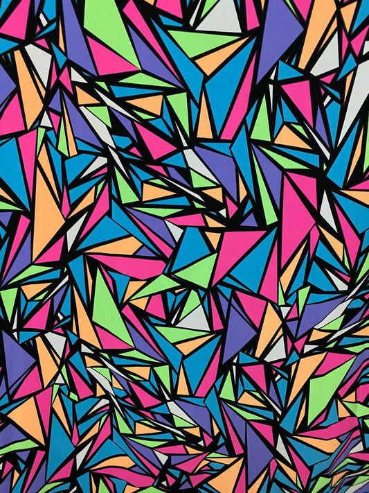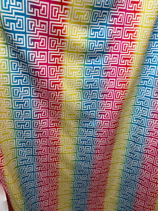 New Geometric rainbow design print on nylon spandex 4-way stretch 58/60” Sold by the YD. Ships worldwide from Los Angeles California USA.