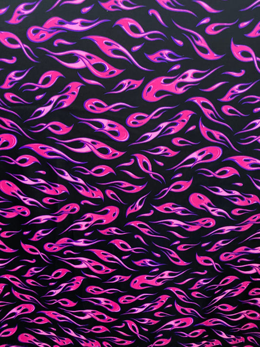 New modern hot flames design it glows in the dark with a black light print on best quality of nylon spandex 4-way stretch 58/60”