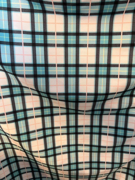 Plaid design print on nylon spandex 4way Stretch 58/60" sold by the yd. Ships worldwide from Los Angeles California United States.