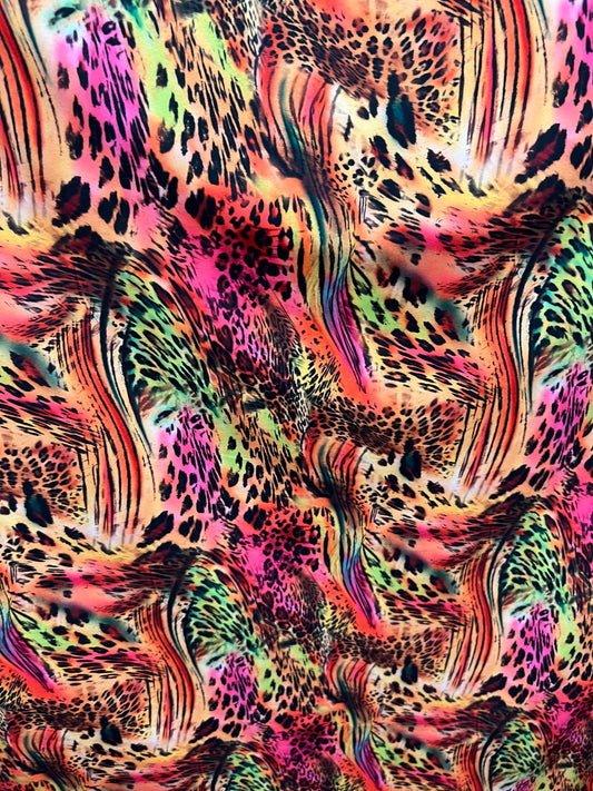 New exotic animal print multicolor print on great quality of nylon spandex 4-way stretch 58/60” Sold by the YD. Ships worldwide from L.A
