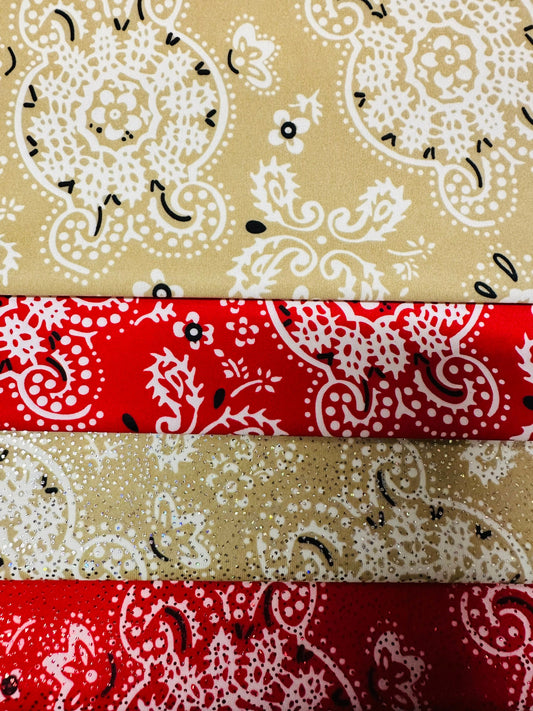 Luxury Bandana paisley design with foil and without foil best quality of nylon spandex ;-way stretch 58/60” Sold by the YD.