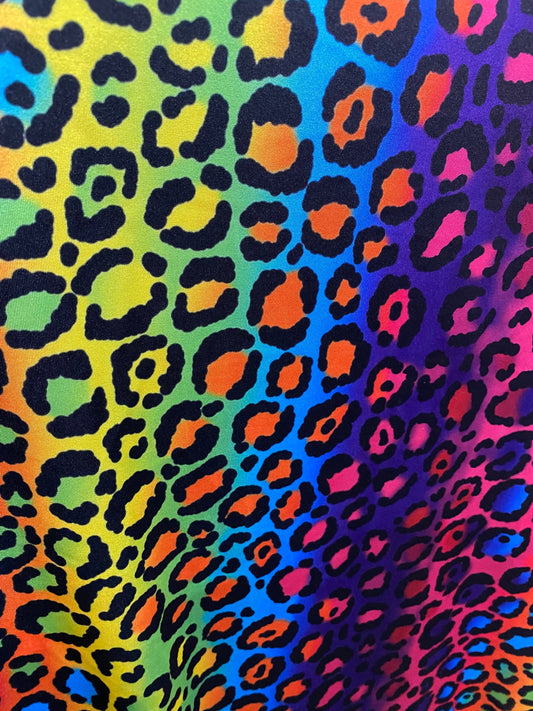 New Exotic rainbow leopard design print on great quality of nylon spandex;-way stretch 58/60” Sold by the YD. Ships Worldwide from L.A CA