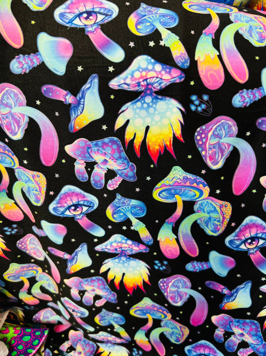 New Magic Mushrooms design print on great quality of nylon spandex 4-way stretch 58/60” Sold by the YD. Ships Worldwide from Los Angeles CA