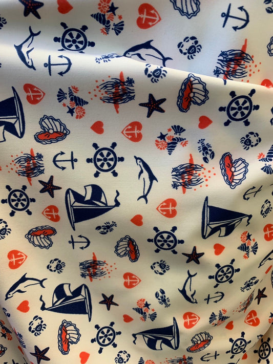 New print nylon spandex Nautica design 4way stretch 58/60" Sild by the YD. Ships worldwide from Los Angeles California USA.