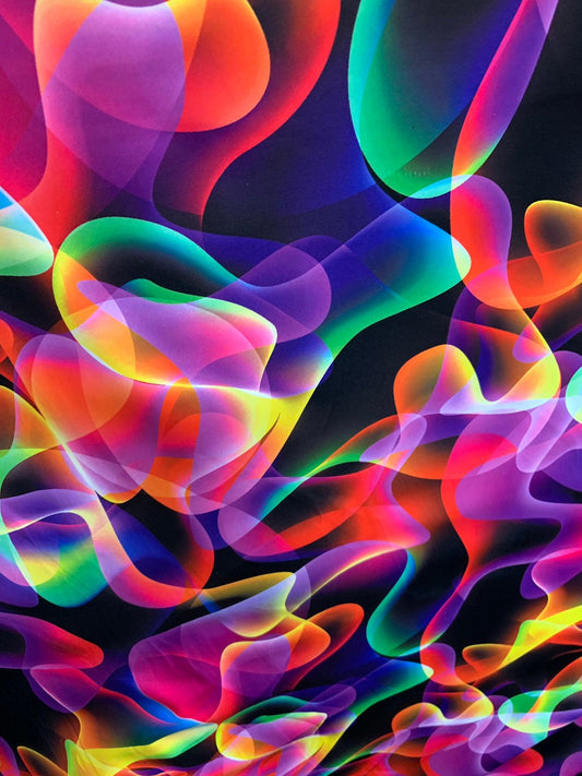 New arcade waves multicolor print on heavy nylon spandex 4way stretch 58/60" Sold by the YD. Ships worldwide from Los Angeles California USA