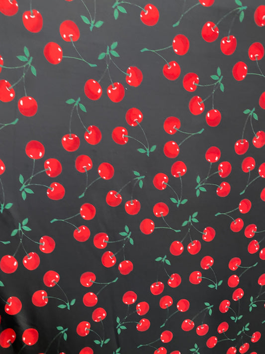 New print nylon spandex cherry design 4-way stretch 58/60” Sold by the YD. Ships worldwide from Los Angeles California USA.
