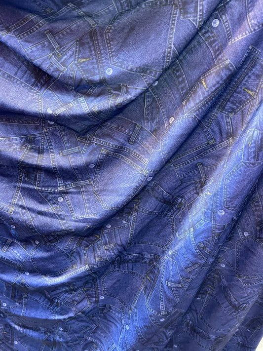 Jeans design print on great quality of nylon spandex 4-way stretch 58/60” Sold by the YD. Ships Worldwide from Los Angeles California USA.
