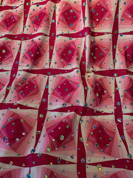 New 3D Geometric design with hologram sequins nylon spandex 4way stretch 58/60” Sold by the YD. Ships worldwide from Los Angeles California