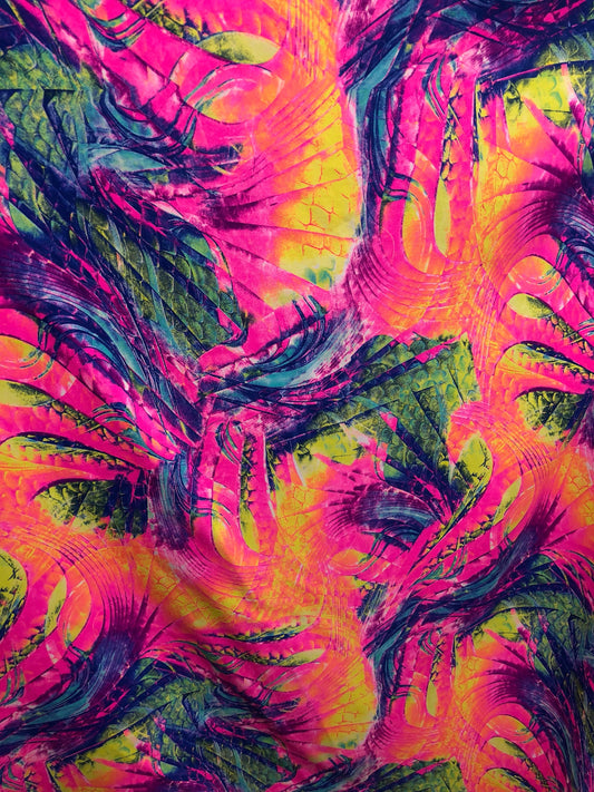 New heavy nylon spandex abstract design multicolor 4way Stretch 58/60" Sold by the YD. Ships Worldwide from Los Angeles California USA.