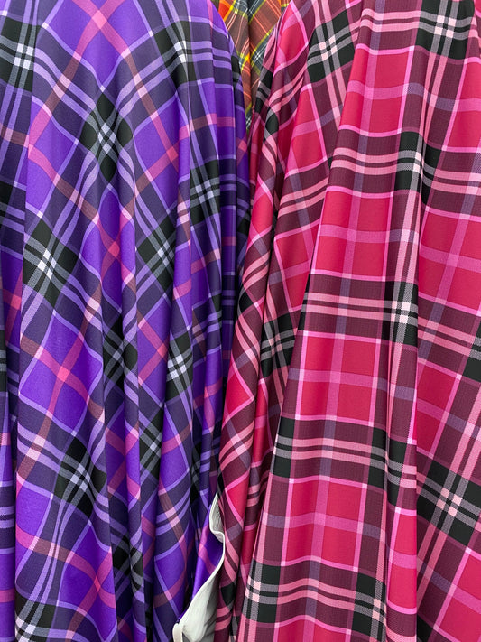Great Plaid design best quality nylon spandex 4-way stretch 58/60” Sold by the YD. Ships worldwide from Los Angeles California USA.