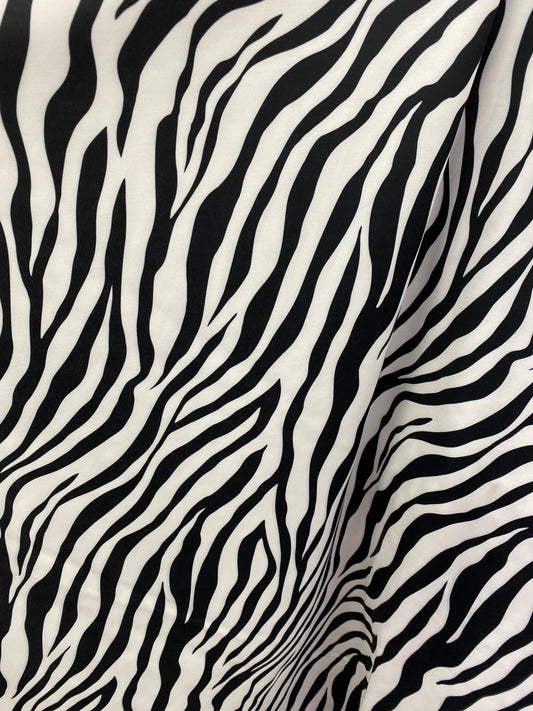 New exotic zebra design print on nylon spandex 4-way Stretch 58/60” Sold by the YD. Ships worldwide from Los Angeles California USA.