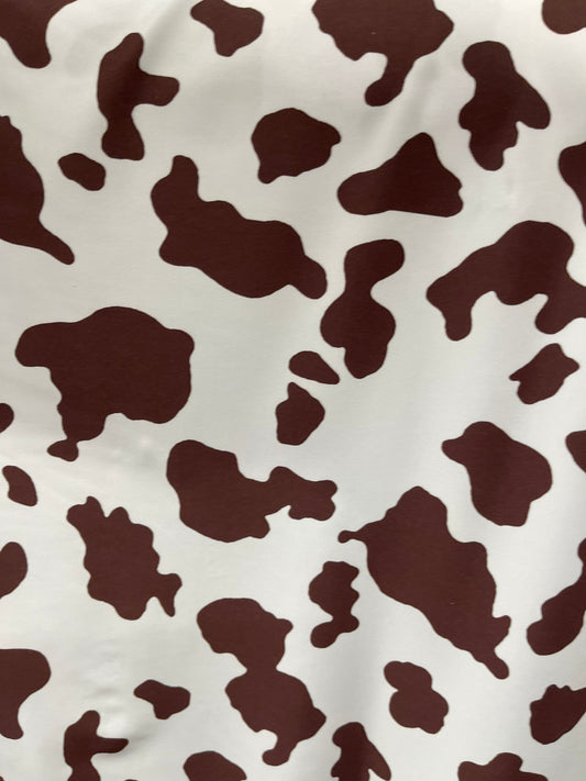 Cow design white/brown print on great quality of nylon spandex 4-way stretch 58/60” Sold by the YD. Ships Worldwide from Los Angeles Califor