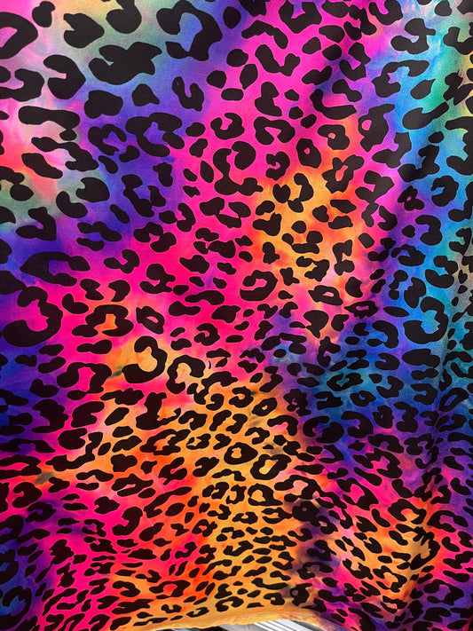 New Exotic leopard design rainbow multicolor 4way print nylon spandex 58/60” Sold by the YD. Ships worldwide from Los Angeles California USA